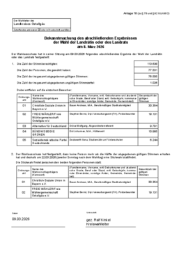 Abschließende Ergenisse der Wahl des ersten Bürgermeisters finden Sie → hier