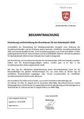 Auch Rentenanträge oder bauliche Anfragen, Beglaubigungen, Bescheinigungen oder Gestattungen werden direkt in Irsee zu den offiziellen Sprechstunden (Di 14–18 Uhr, Do 9–11 Uhr) bearbeitet bzw. ausgefertigt. Siehe auch unter Einwohnermeldeamt.
