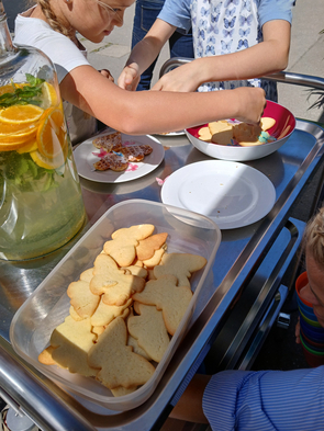 Kurz vor den Sommerferien besuchten alle Kinder unserer Schule die Erlebnisimkerei im Honigdorf Seeg. Das war eine super Einstimmung auf unser diesjähriges Abschlussfest. Am Montag darauf starteten wir dann unseren Projekttag "Bienen" mit einem leckeren Honigbrot-Frühstück. Natürlich mit Honig aus Seeg. Die Brote von Koneberg spendete uns der Freundeskreis – herzlichen Dank!