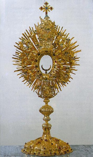 Diese Monstranz ist nicht identisch mit der 1705 in einer Klosterchronik erwähnten, sondern kann aus stilistischen Gründen und wegen ihres Beschauzeichens (von amtlichen Prüfern in Gold- und Silberarbeiten eingeschlagenes Zeichen zur Bestätigung von Qualität und Feingehalt) erst gegen 1720 entstanden sein. Da zeitgenössische Nachrichten darauf hindeuten, daß die Monstranz von 1705 ebenfalls eine Arbeit Joseph Wolfgang Fesenmayrs war, dürfte das erhaltene Stück Gegenstand eines zweiten Auftrages gewesen sein. Eine ähnliche, aber ungleich reichere Monstranz fertigte Fesenmayr 1712 für das Benediktinerkloster St. Ulrich und Afra in Augsburg.