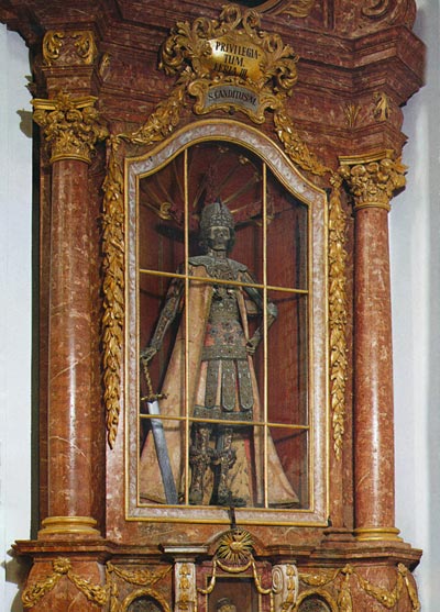 Wie der linke Seitenaltar weisen die Nebenaltäre in den Kapellen des 4. Jochs ebenfalls gläserne Schreine auf, die die Heiligen Leiber der Märtyrer Faustus (links) und Candidus (rechts) bewahren. Auch diese Schreine lassen sich durch Leinwandgemälde mit Darstellungen der lebenden Heiligen verdecken. An dieser Stelle sei ein Exkurs über die Reliquien und ihre Verehrung eingeschoben: Mit dem Verlust des Kirchenschatzes 1633 hatte Irsee auch seine Reliquien eingebüßt. Daraufhin bemühte man sich in Rom, wo seit Wiederentdeckung der Katakomben Ende des 16. Jahrhunderts ein großer Kult um die erhobenen Gebeinen entstanden war, neue Reliquien zu erwerben.