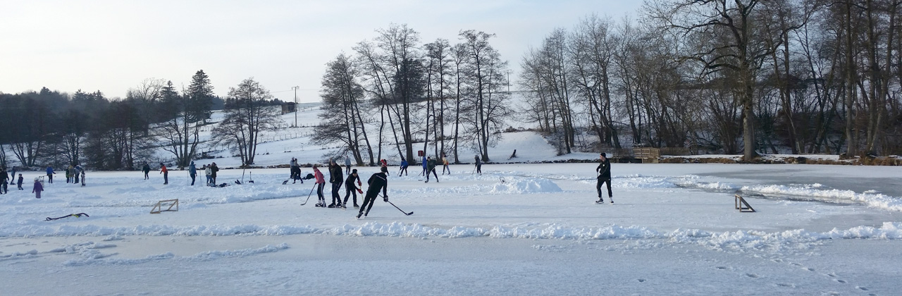Im Winter kann man auf dem zugefrorenen Weiher Schlittschuhlaufen und Eisbaden.