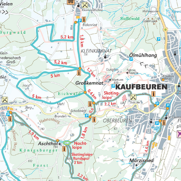 Der Skiclub Kaufbeuren pflegt und spurt seine Loipen für Langläufer von Irsee über das Aschthal bis zur etwa 10 km entfernten Wenglinger Steige. Das gesamte Gebiet ist inzwischen sehr beliebt und wird von den Langläufern gut angenommen. Die Ehrenamtlichen des Skiclubs versuchen nach jedem Schneefall, innerhalb kürzester Zeit mit dem Spuren zu beginnen.